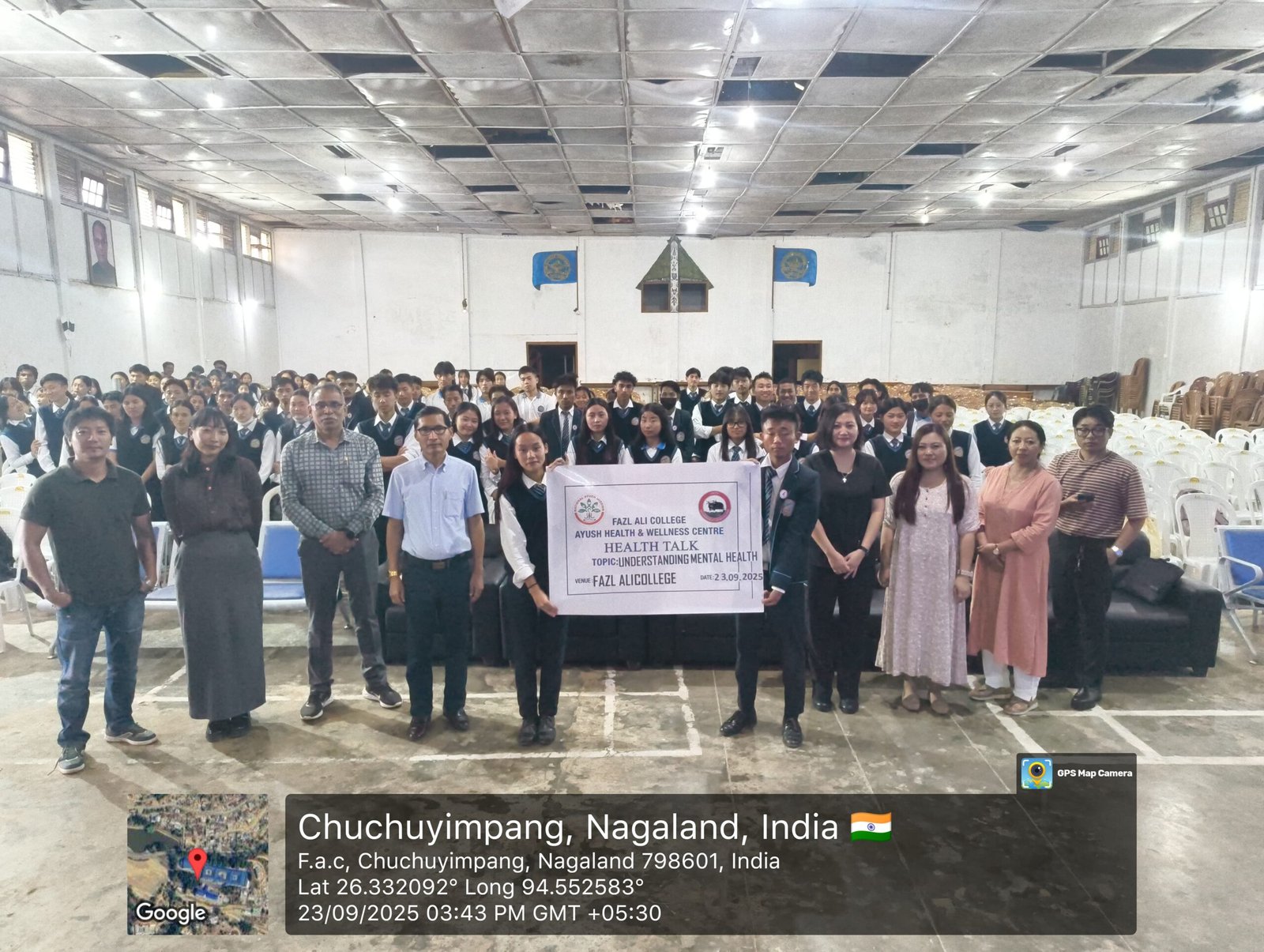 The Ayush Health and Wellness Centre, Fazl Ali College, organized a health talk on 23rd September 2025 from 2:30 p.m. onwards at the college auditorium. The in-charge of the Centre, Dr. Aienla M. Imchen, introduced her team and proceeded to deliver a talk on two important topics: Observance of World Rabies Week 2025 and Understanding Mental Health.